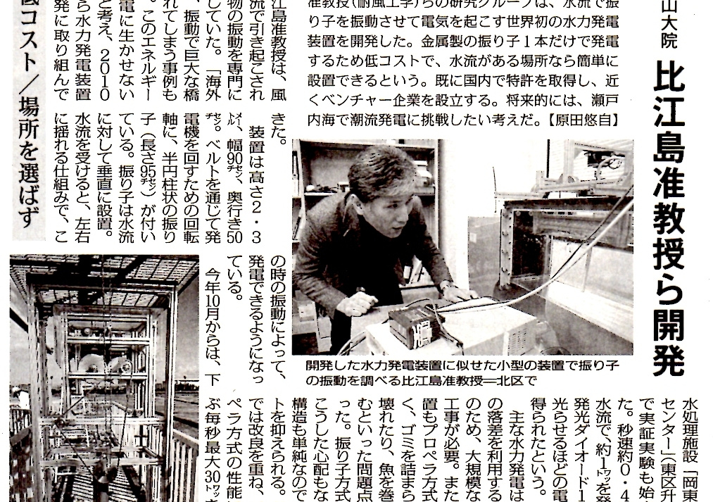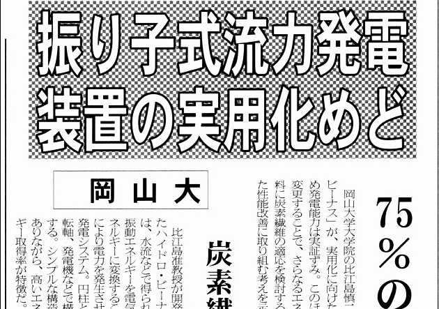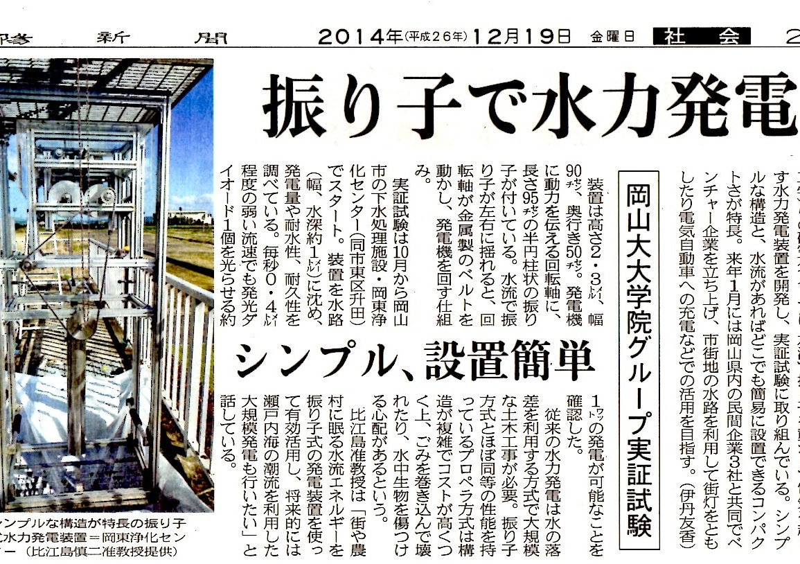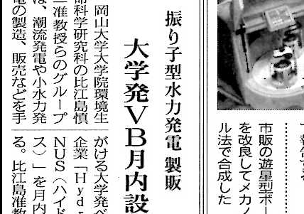 "Swinging Pendulum in Water Current to Generate Electricity - Okayama University" Japan for Sustainability (2013年4月19日) |