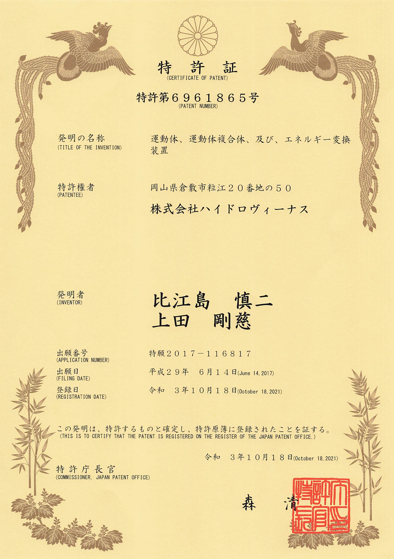 「運動体、運動体複合体、及び、エネルギー変換装置」 特許第6961865号