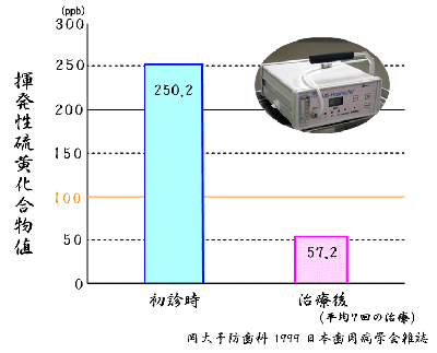 | 予防歯科で行っている歯周病の治療の1つに術者ブラッシングがあります。術者ブラッシングとは、歯科医師や歯科衛生士によるブラッシングのことをいいます。術者ブラッシングを受けることによって、治療前と後では揮発性硫黄化合物の値も減少します。