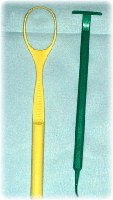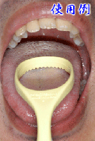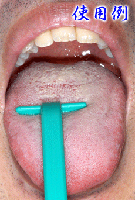 | 舌の汚れである舌苔については、歯ブラシやガーゼで除去することができますが、写真のような舌ブラシで効率良く除去することができます。