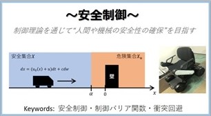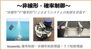 時間の経過とともに状態が変化するダイナミカルシステムの解析と制御について扱うシステム制御理論について研究しています。特に、非線形性や確率要素を含んだシステム(非線形システムや確率システム)の安定化や安全化などに着目しています。そして、それを活かした、電動車椅子などのヒューマンアシスト制御、車両ロボットの制御、自動操船、超音波モータのサーボ制御などの応用問題も行っています。