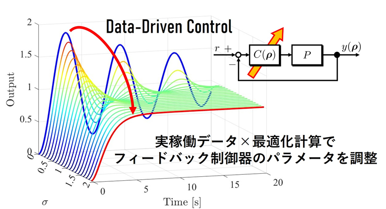 制御対象のモデルが得られない状況では経験的または試行錯誤的な制御系の設計や調整をせざるを得ない状況があります。そのような状況においても制御則の設計や調整を行う方法として、データ駆動制御があります。測定した時系列信号を用いて直接的に制御則を設計・調整することが可能で作業の効率化などが期待でき研究が進められています。データ駆動制御を中心に、より良い制御則を求める方法とその応用について研究しています。