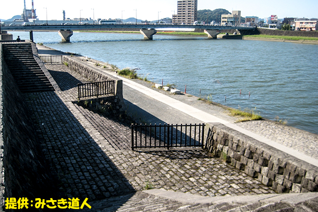 安政4(1857)に竣工した松寿院の代表的な事業/平山から熊野へ行く道は大浦川の潮が満ちると人馬の通行が困難で、満潮時には海から入った潮で農作物は塩害を受けていた→松寿院は、大浦川を拡幅・直線化することで解決