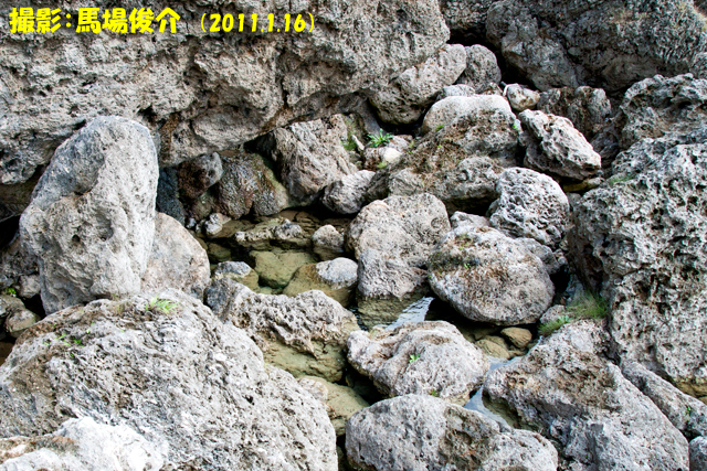自然洞窟/細い竪穴式の井戸階段が付いているが、暗くて滑りやすくハブが出るため危険