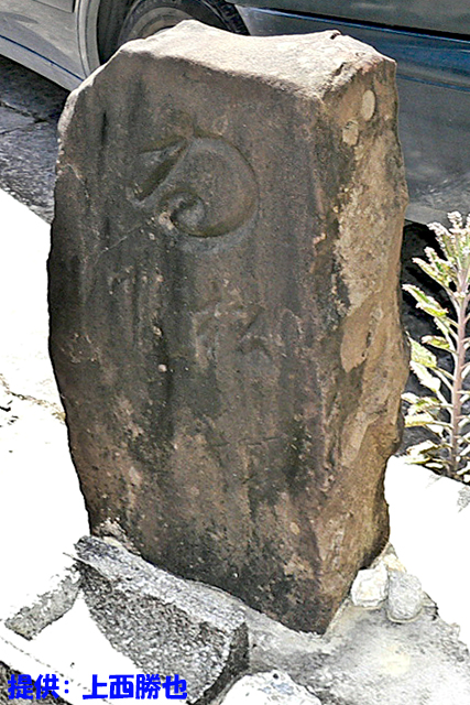 乾隆検地の際、土地測量に使った図根点/印部石の表面に「タ」と刻まれている/「タ」はいろは順 |