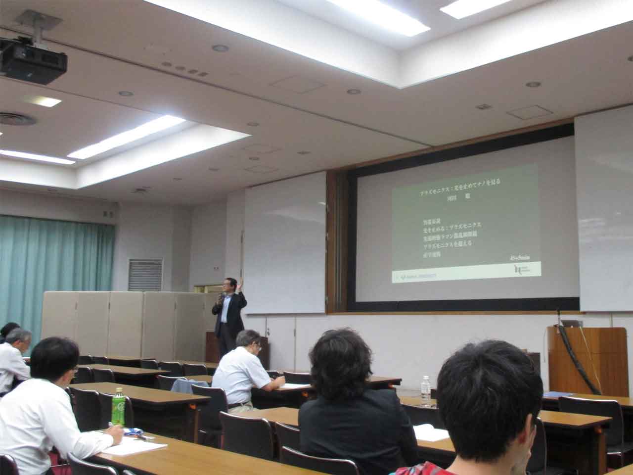 2015.5/13: 大阪大学から河田先生を、東京工業大学から彌田先生をお招きし、岡山大学異分野融合研究育成支援事業の一環としてナノファンクショナルマテリアルシンポジウムを開催しました.