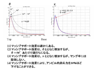 マッシブサポート効果解析の条件です。絵をかいてメッシュ切り境界条件を入れるだけです。こういう操作がワンタッチでできるようになっています。20年ほど前に有限要素法をかじったころとは雲泥の差です。20年前に卒論研究として例題解析をやらせたのですが、境界条件の入力が面倒で結局学生が卒業し中断してしまいました。 |